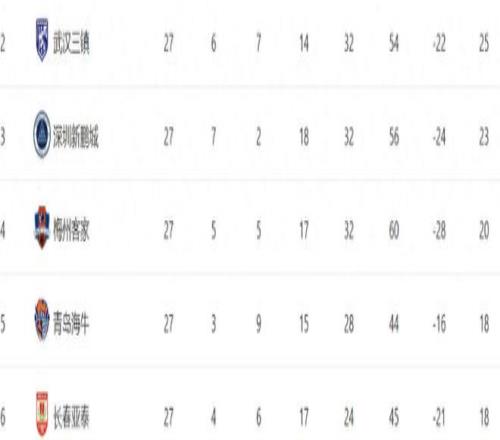 本赛季的中超联赛只剩下最后3轮了!虽然冠军之争进入白热化!但本文只讨论保级形势。随着中超第27轮结束。积分榜上排名第11位的河南队已经提前上岸了!他们的积分已经达到了32分,领先倒数第二的青岛海牛队14分。而从第12名的武汉三镇、第13名的深圳新鹏城队、第14名的梅州客家队以及深陷降级区的青岛海牛队和长春亚泰队,这5支球队都有降级的风险。值得一提的是武汉三镇队和长春亚泰队都曾经是中超联赛冠军。而长春亚泰队目前积分榜垫底。