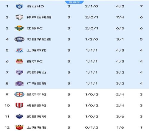 亚冠3轮积分榜:中超球队1胜2负申花将蓉城挤出晋级区前8差3分