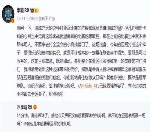 对此,李璇老师表示,“请问一下,造成昨天的这种打亚冠比赛的阵容和现状是谁造成的呢?但凡在穆斯卡特的心目当中觉得这场客战武里南联的比赛他想取胜,那在之前的比赛当中就不会那样用人。不要拿去打全运会的小将找借口了,这场比赛、今年的亚冠打成这个样子,是俱乐部和穆帅的共识,就是不计成本的一定要在联赛当中领先,亚冠是可以放弃的,这是主观故意。既然如此,拿到整个东亚区排名倒数第一的成绩是求仁得仁,就得承受做出这种选择带来的代价,那就是会有人批评或者嘲讽这家冠军俱乐部在亚冠赛场的丢脸和尴尬,你们能堵得住悠悠众口吗?就像你说的,既然是冠军球队,也积点德吧,给中超争点脸吧。”