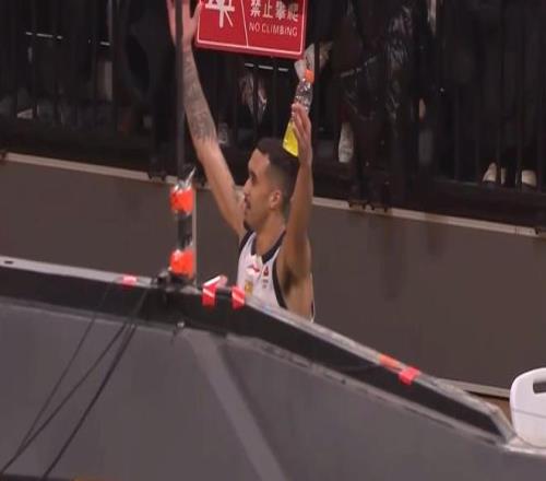 6分27秒,王岚嵚打进高难度折叠上篮2+1,但随后奎因再飚进2记三分,半节连拿9分,帮助广东扩大领先来到45-31!